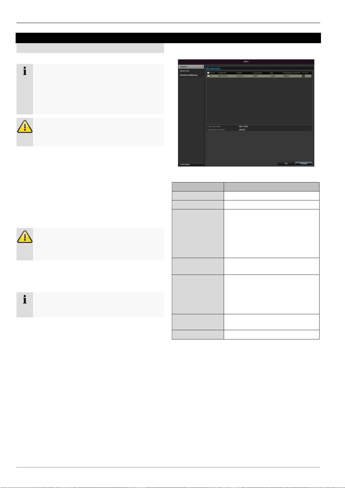 Hårddiskinställningar för kameror