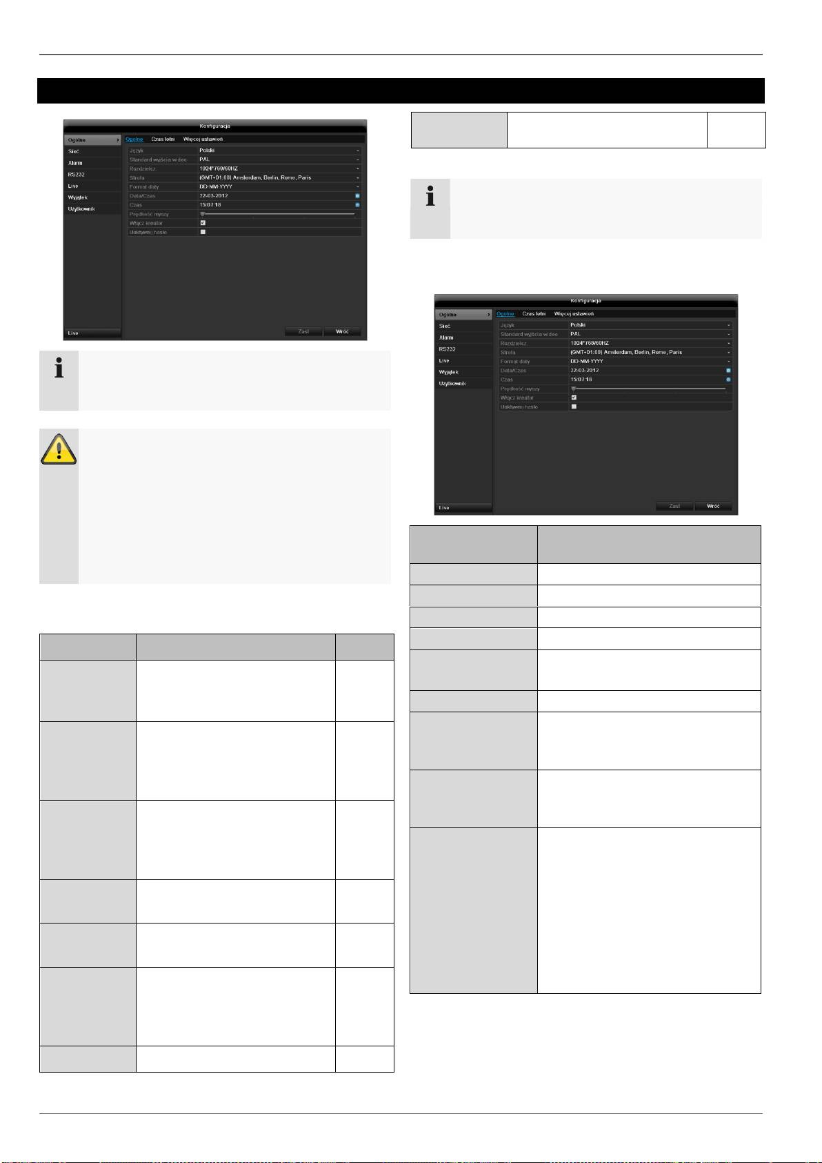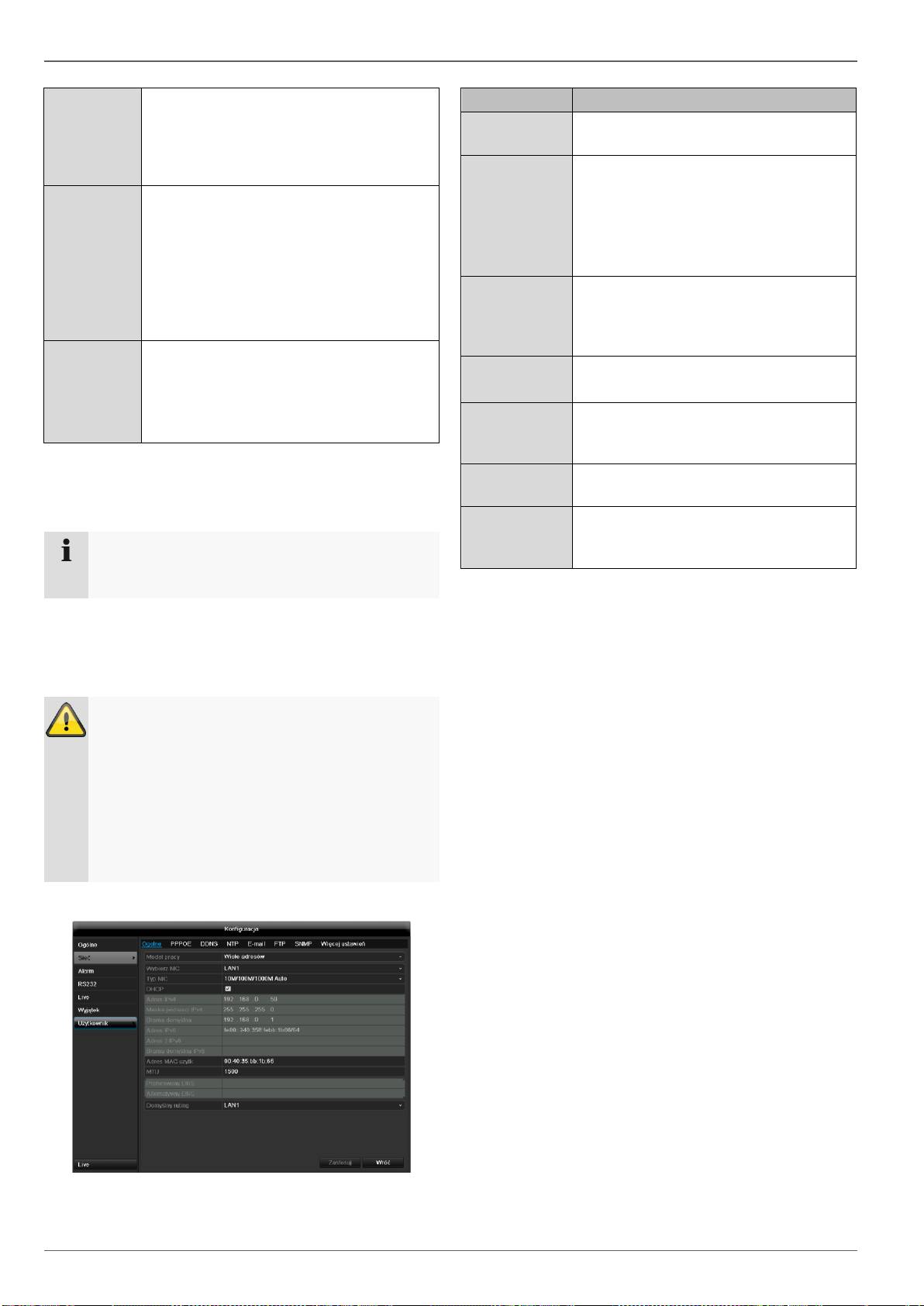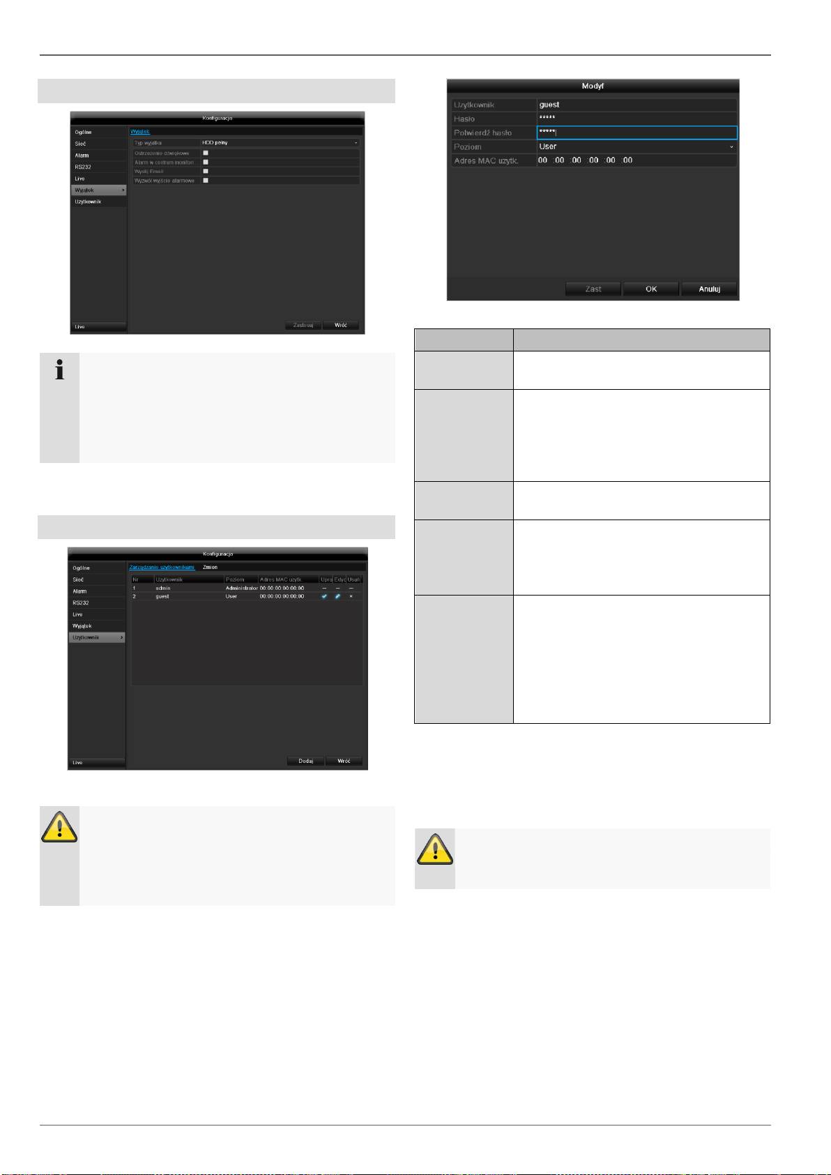 RS232, Wyświetlanie, Ostrzeżenie, Użytkownicy).