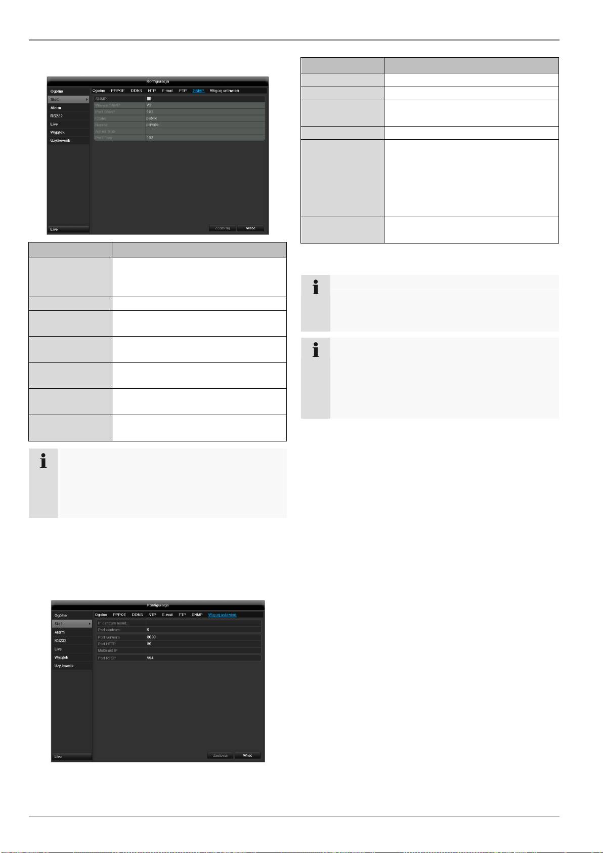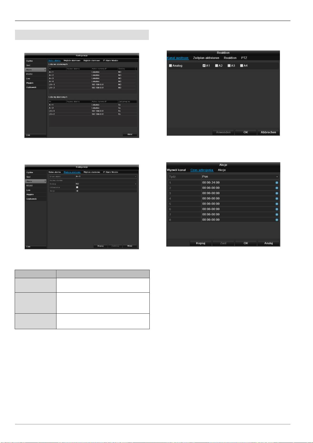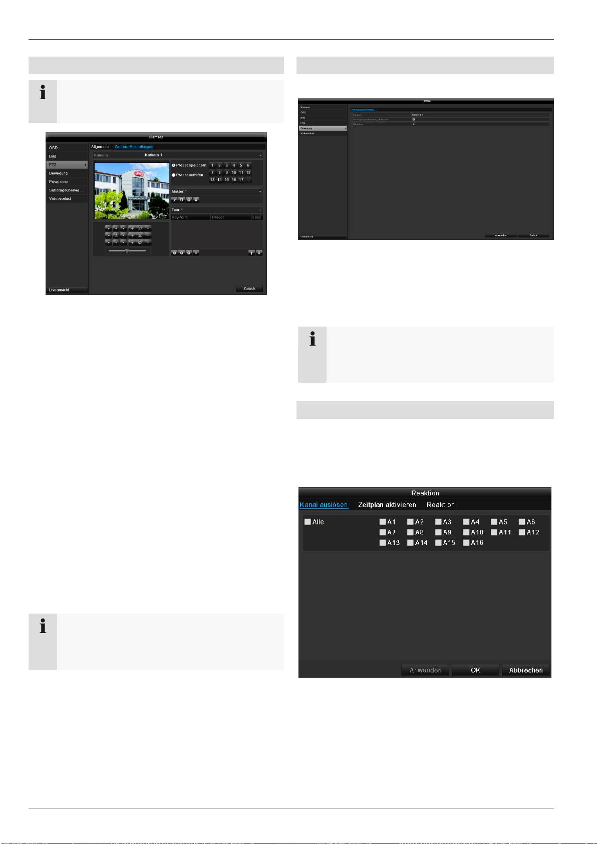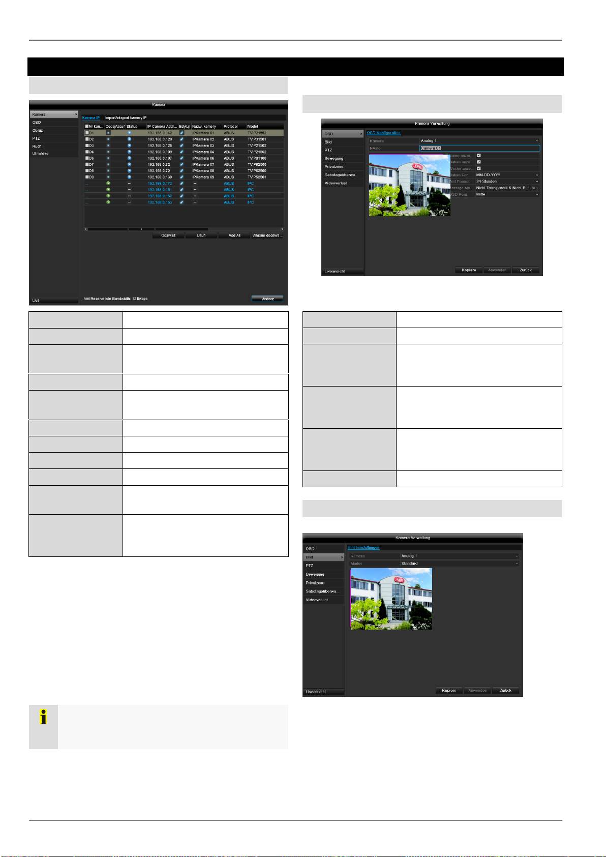 konfiguracja PTZ, wykrycie ruchu itd.)
