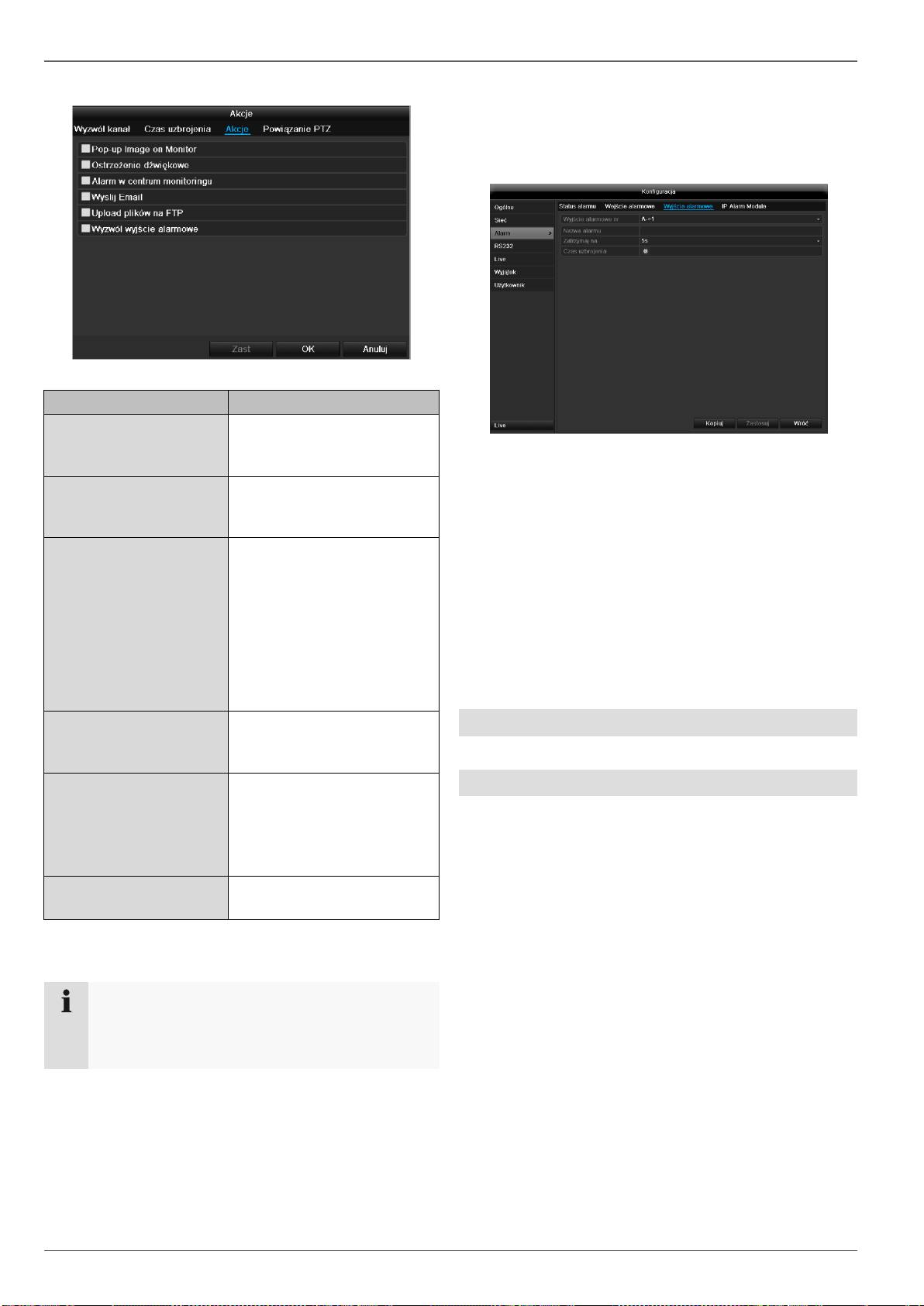 uruchomionych takimi zdarzeniami jak alarmy lub wykrycie ruchu oraz