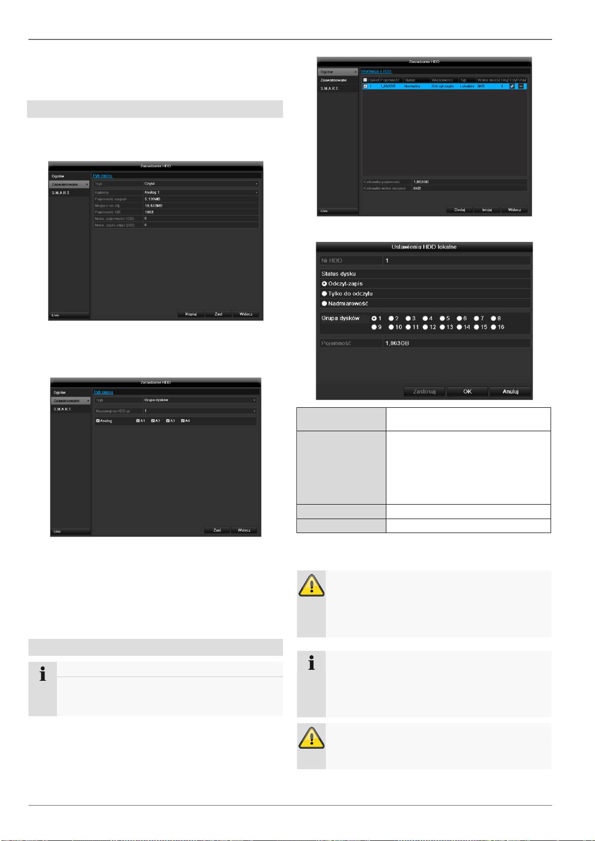 Ustawienia twardych dysków kamer