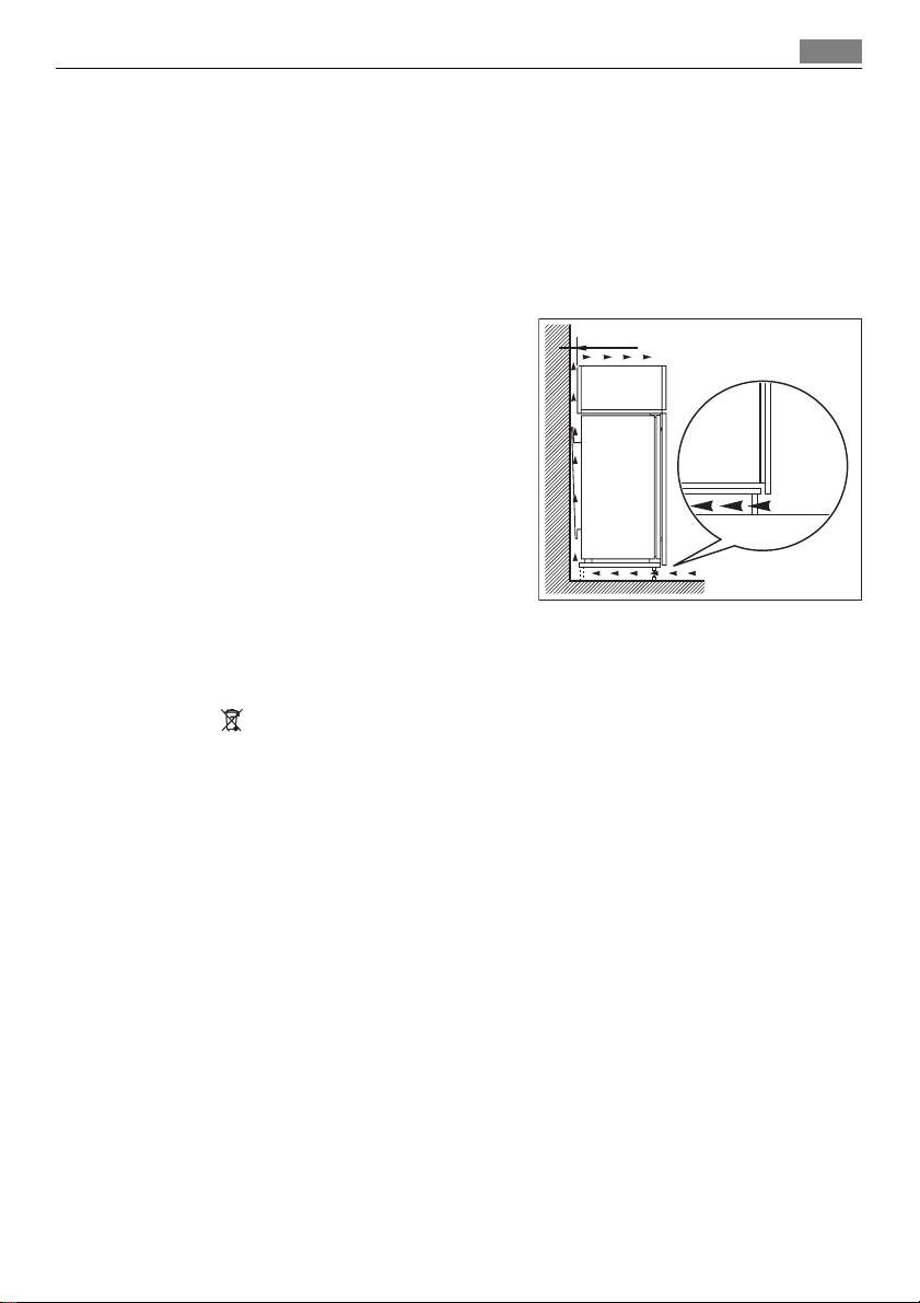 The airflow behind the appliance must be suffi-