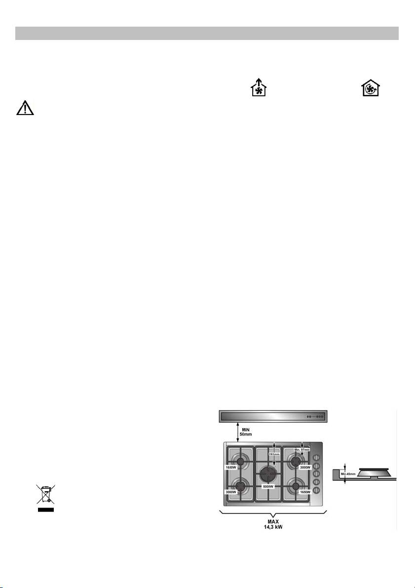 Nëse udhëzimet e instalimit të pllakave të gatimit me gaz përcaktojnë një