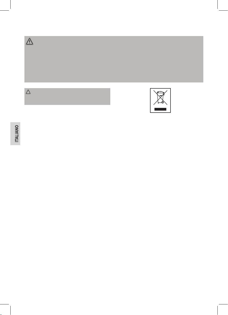 • In nessun caso immergere l‘apparecchio in acqua per la pulizia. Ne