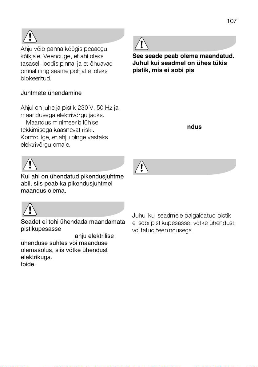 Juhul kui seadmele paigalda tud pistik
