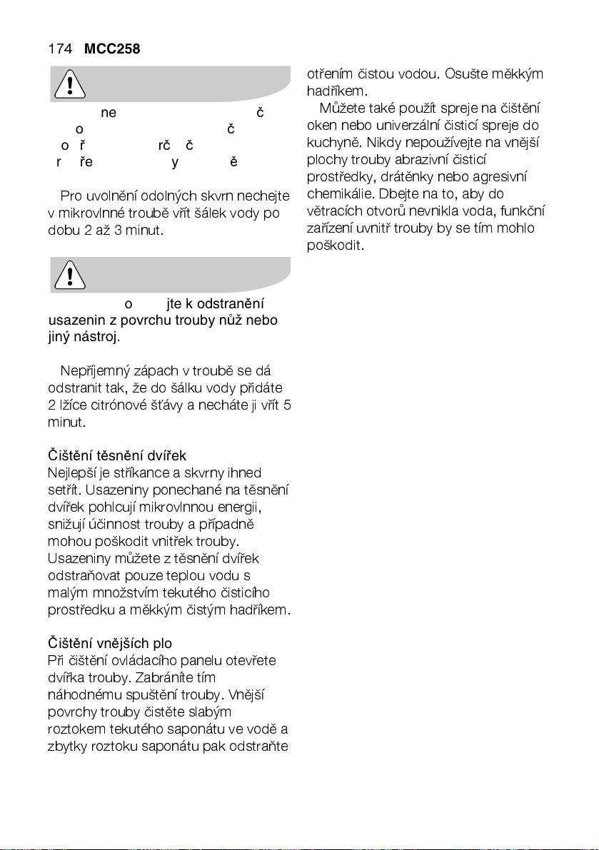 povrchy trouby čistěte slabým