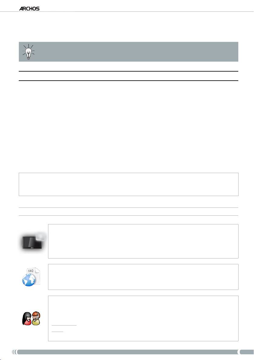 ARCHOS Internet Media Tablett kennenlernen möchten, lesen Sie sich bitte die mit dem Gerät mitgelieferte