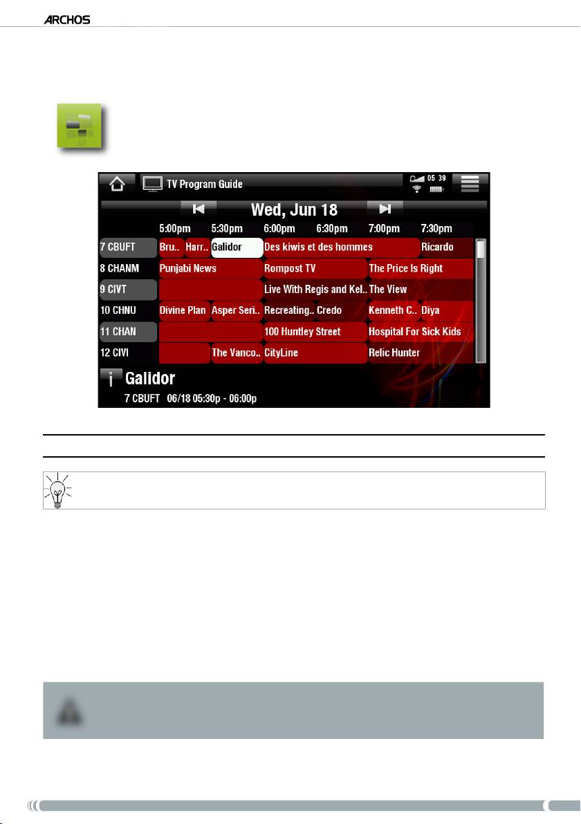 Wählen Sie im Hauptfenster das Symbol TV und , um den ARCHOS TV