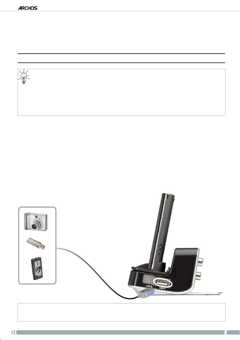 Die DVR Station erlaubt Ihnen das Anschließen externer USB-Geräte an Ihren ARCHOS (USB-Stifte,