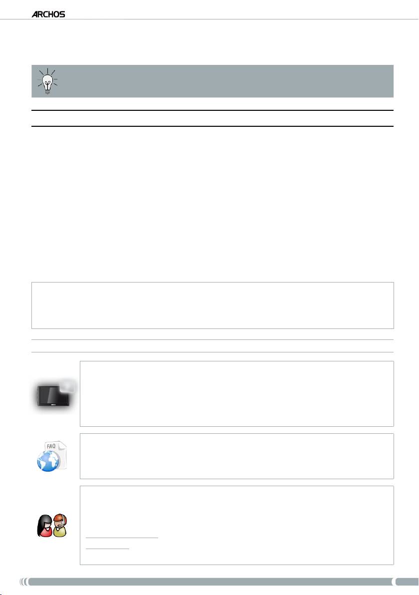 узнать о функциях Вашего ARCHOS Интернет-планшета, можете ознакомиться с прилагающейся