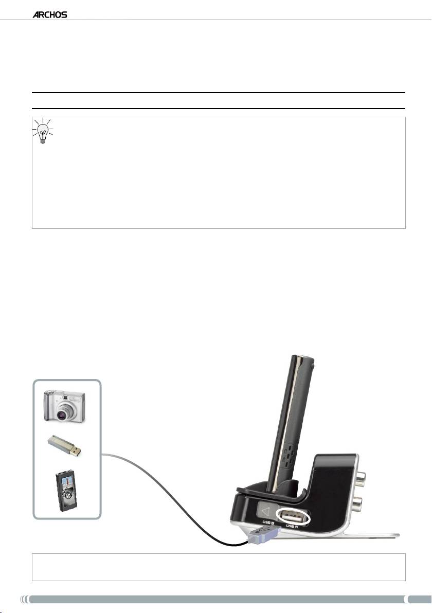 После включения ARCHOS подсоедините внешнее устройство USB (при