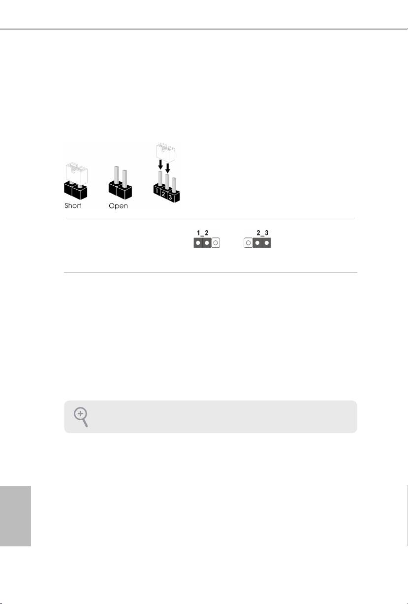 the pins, the jumper is “Short”. If no jumper cap is placed on the pins, the jumper