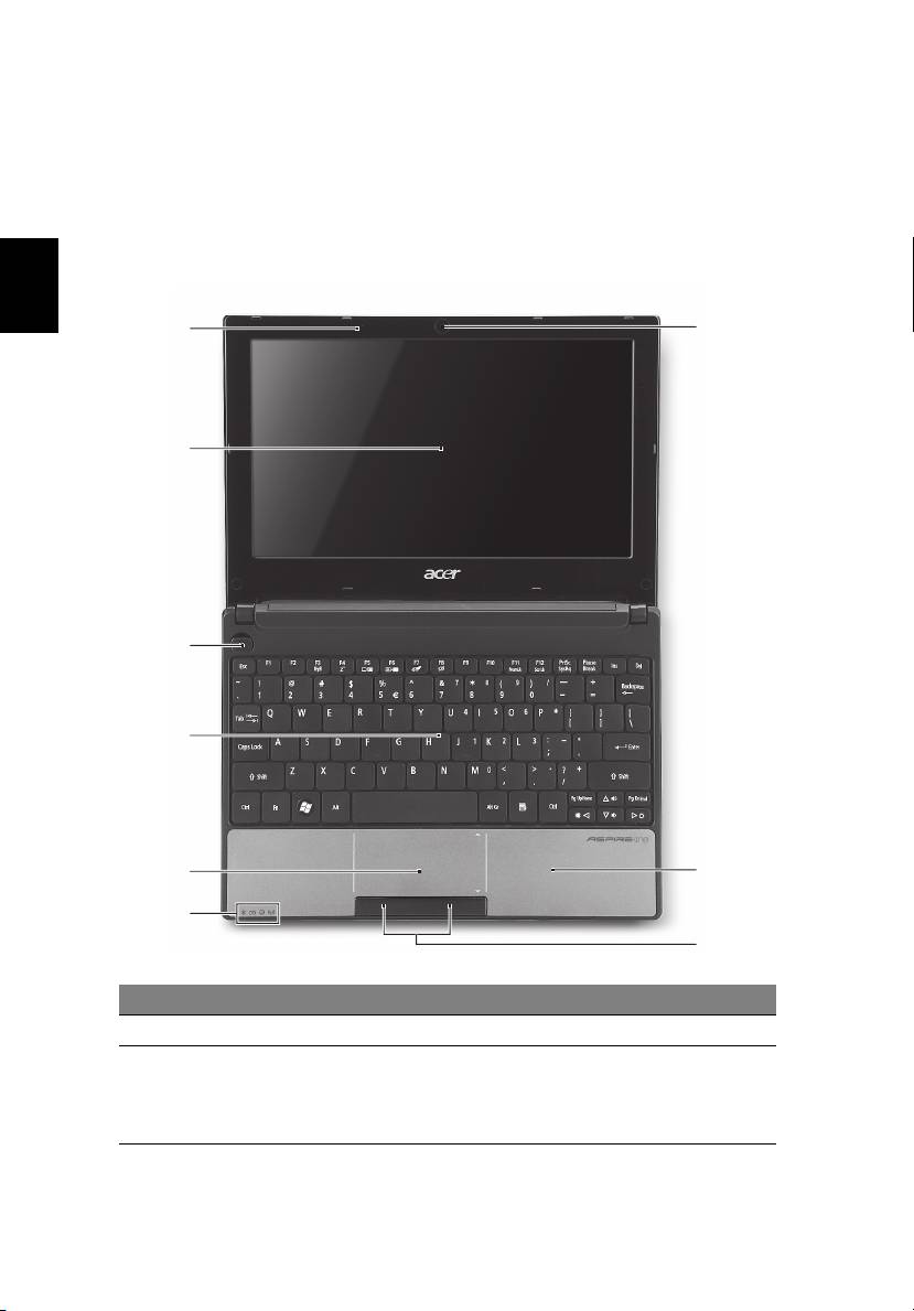 3 Av/på-knapp Slår datamaskinen av og på.