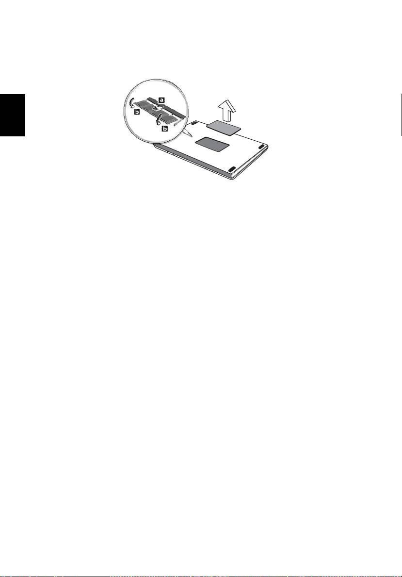 3 (a) Masukkan modul memori ke slot secara diagonal, lalu (b) tekan