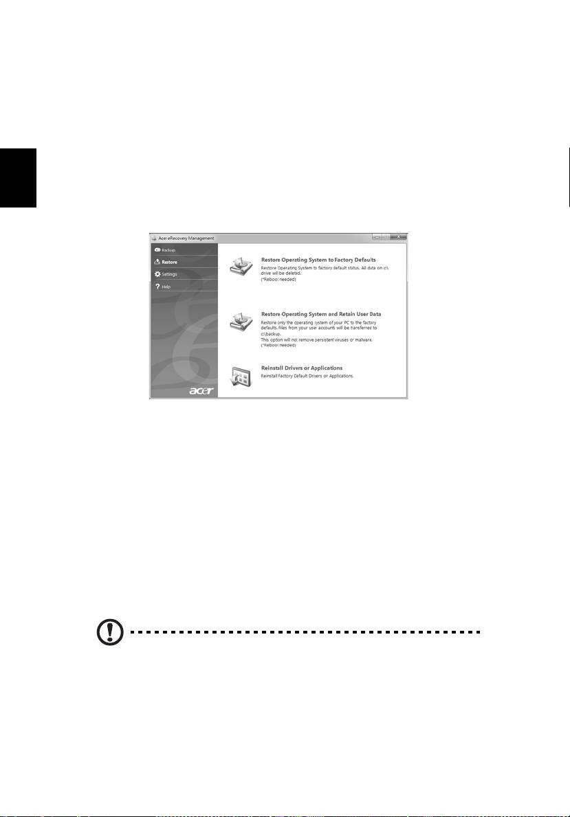 programmet Acer eRecovery Management. Dette tilbakestiller datamaskinen til
