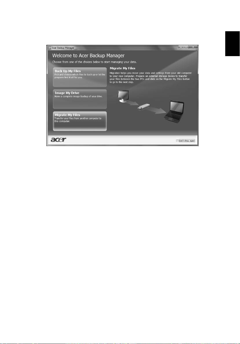 Manager > Acer Backup Manager'ı da kullanabilirsiniz. Bu işlem Hoş geldiniz
