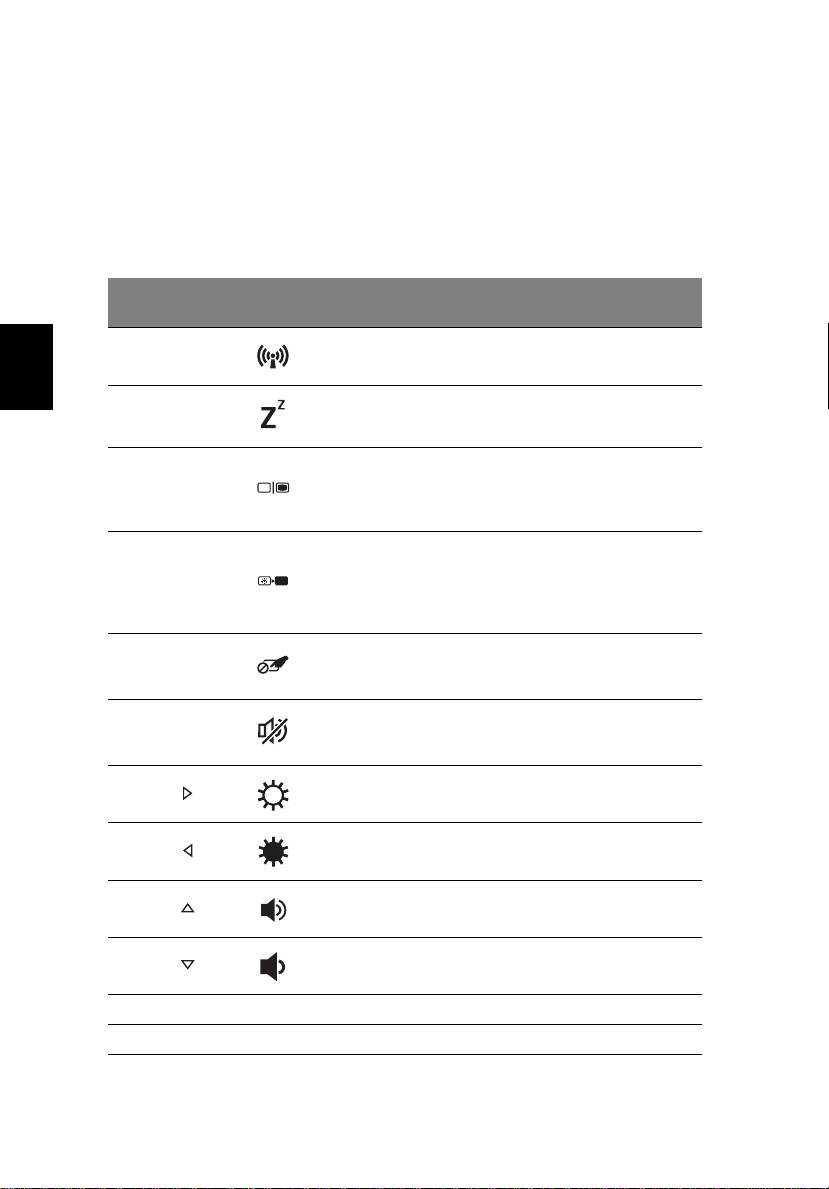 Per attivare i tasti di scelta rapida, tenere premuto <Fn> e premere l'altro