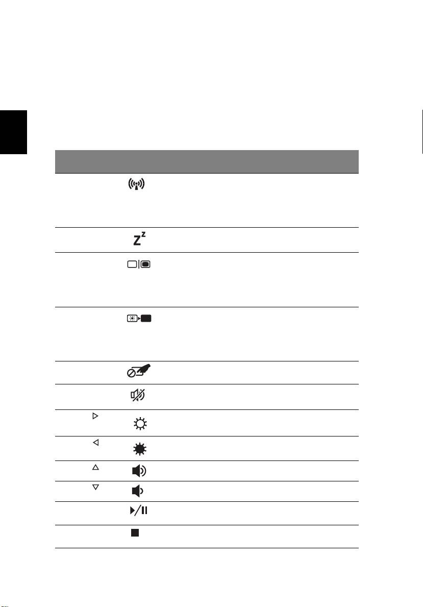 <Fn> + <F6> Disattiva display Disattiva la retroilluminazione