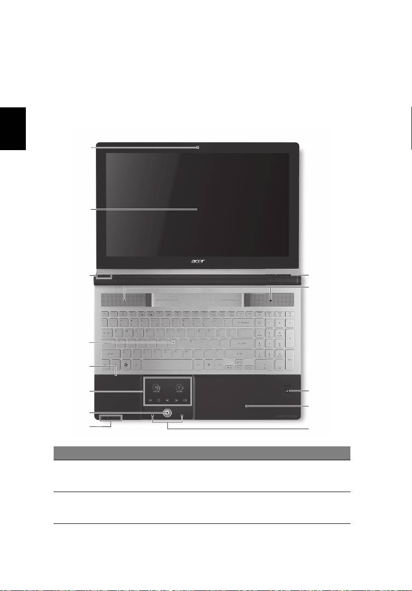 1 Pozice pro baterii Zde je uložena baterie počítače.