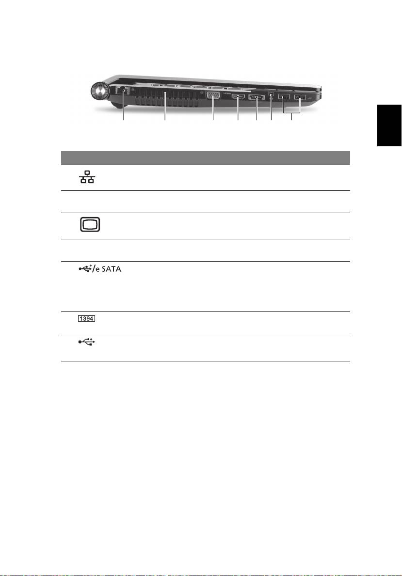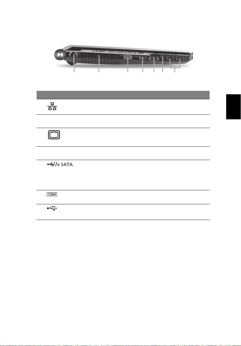 9 DC-in utičnica Povezuje se s AC adapterom.