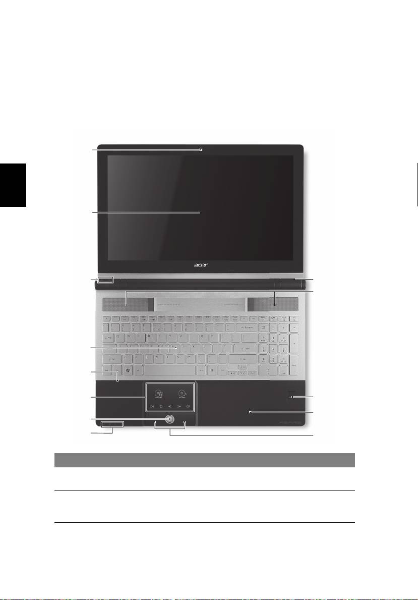 1 Prostor za bateriju Sadrži baterijski komplet računala.