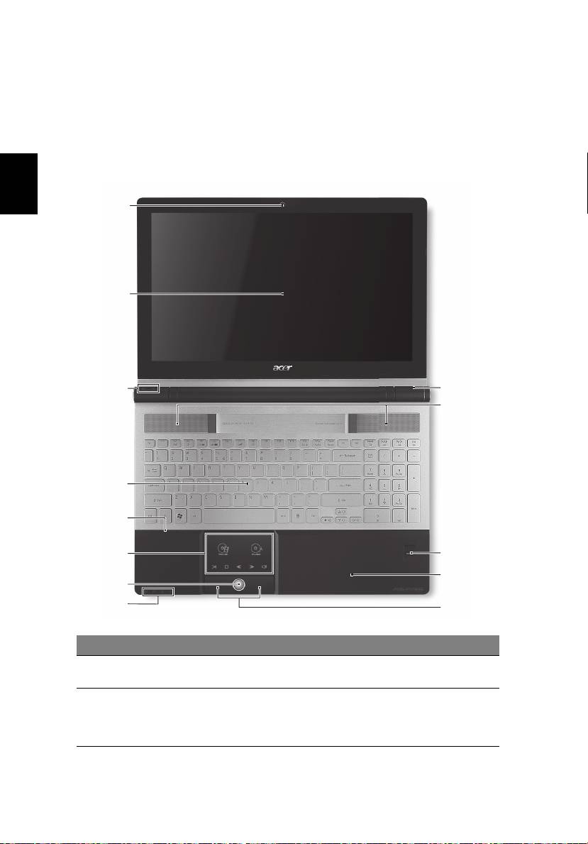 13 Aan/uit knop Schakelt de computer aan en uit.