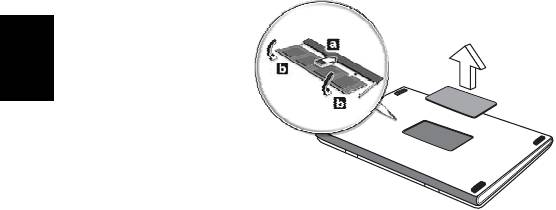 3 先将内存条的一头插入插槽 (a),然后轻轻按下整条内存使其卡入正确的位置
