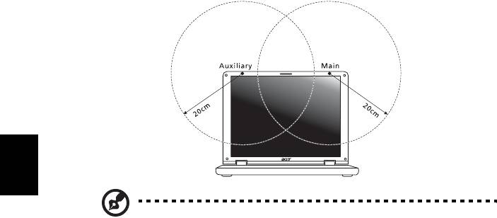 域网 Mini PCI 卡与所有人之间都必须确保至少 20 厘米 (8 英寸 ) 之间