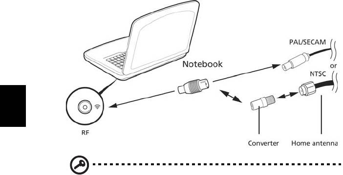 1 Inserire il cavo dell’antenna nella presa RF del computer.