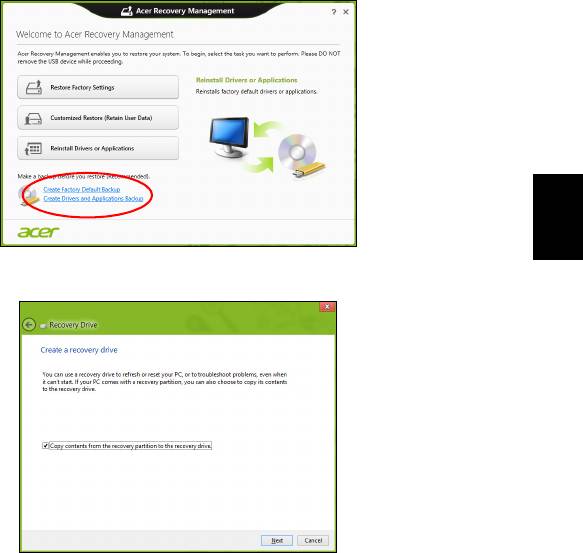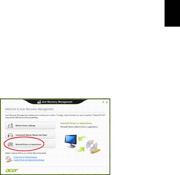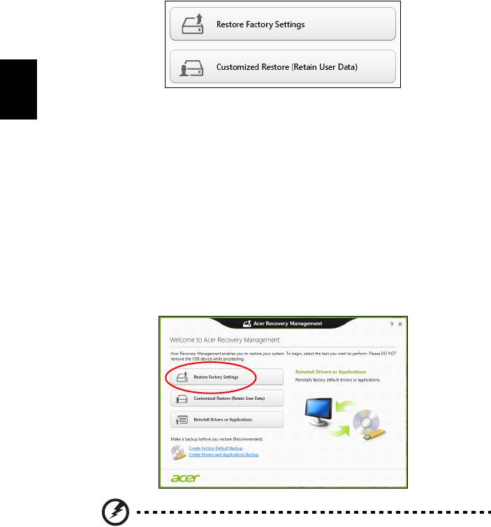 "Restaurar valores predeterminados con Acer Recovery Management" en la