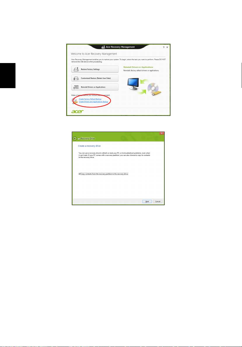 Hinweis: Acer Recovery Management ist nur verfügbar, wenn ein