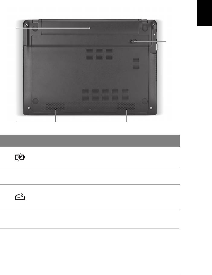1 Baie de la batterie Contient la batterie de l’ordinateur.