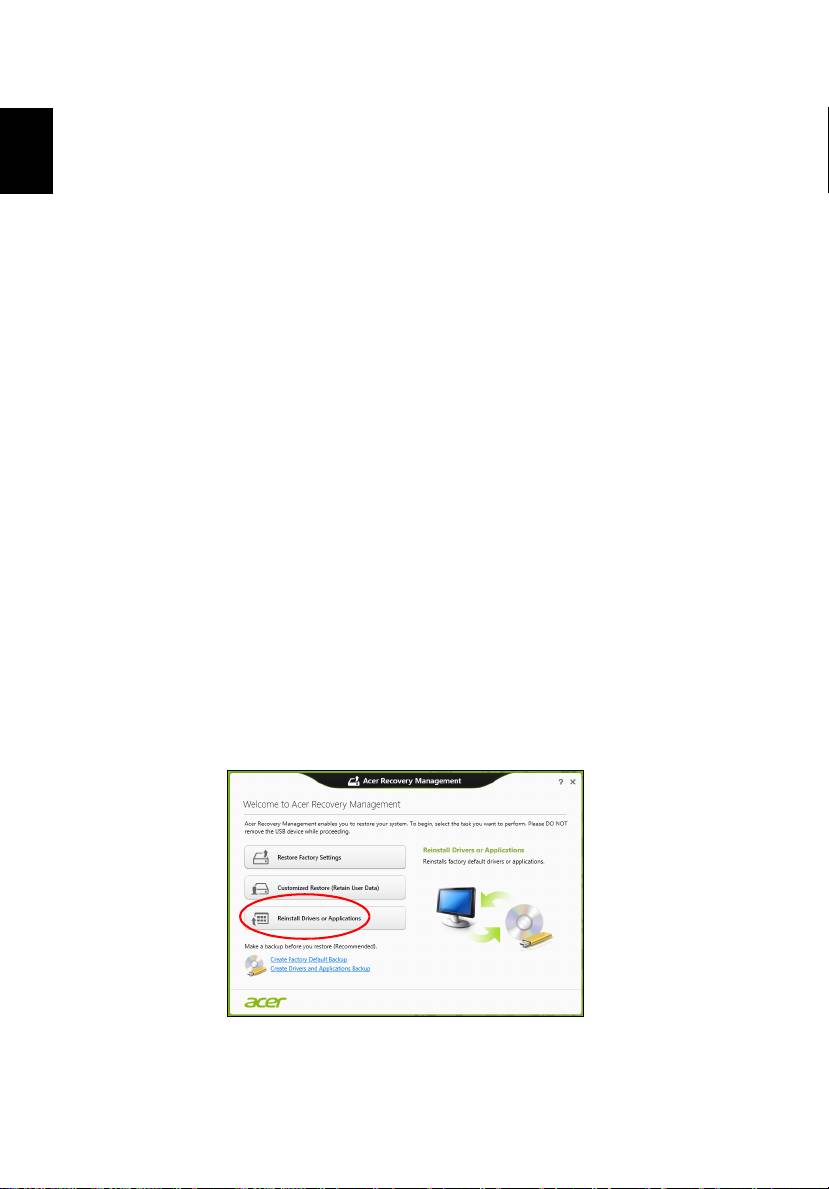 Προσαρµοσµένη επαναφορά µε Acer Recovery Management