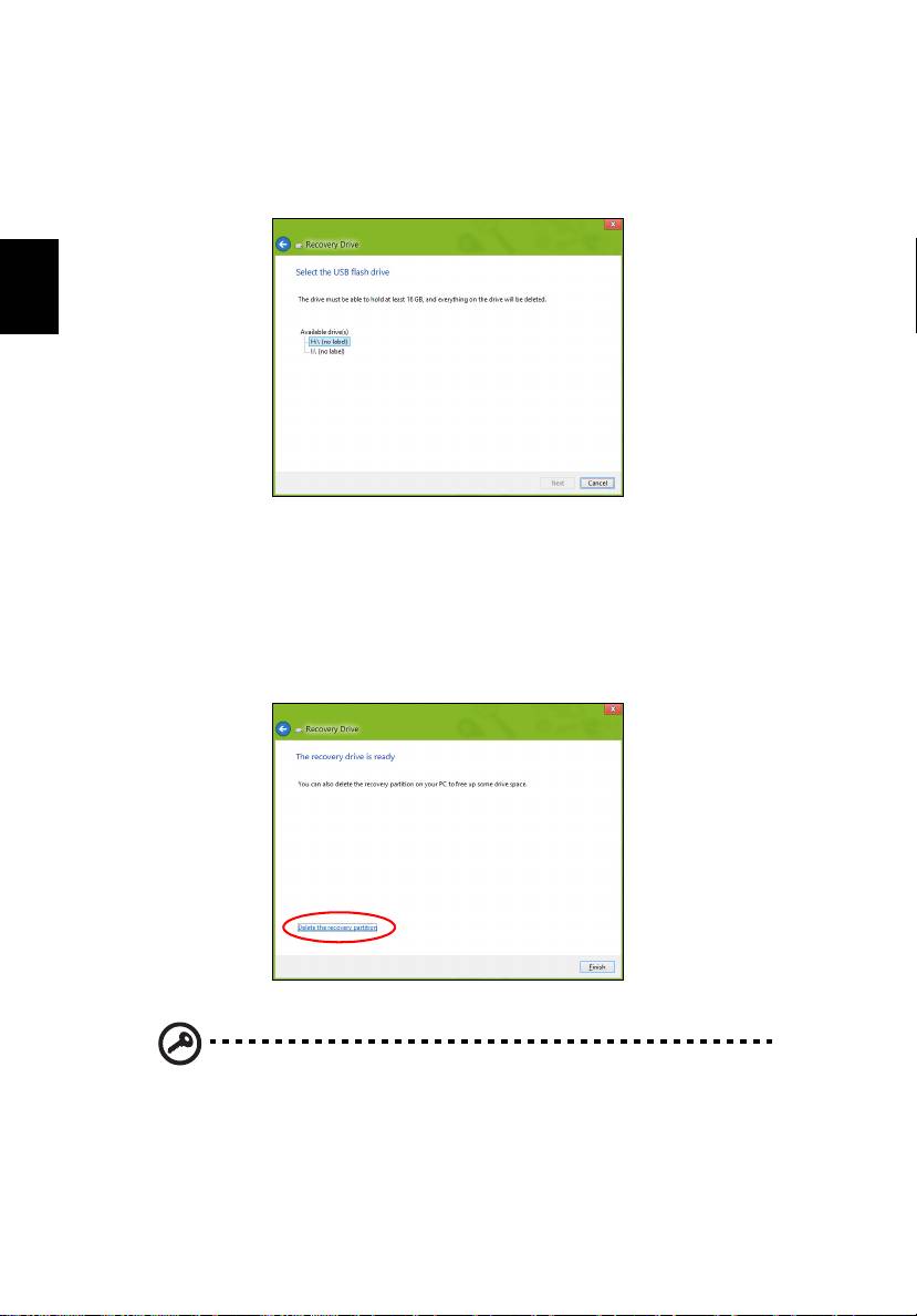 computador, se perder ou eliminar a unidade USB, não pode restaurar o seu