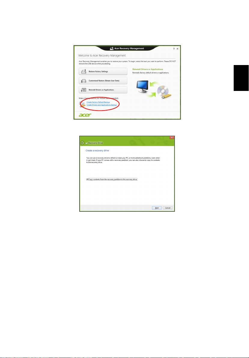 "Restaurare particularizată utilizând Acer Recovery Management" la