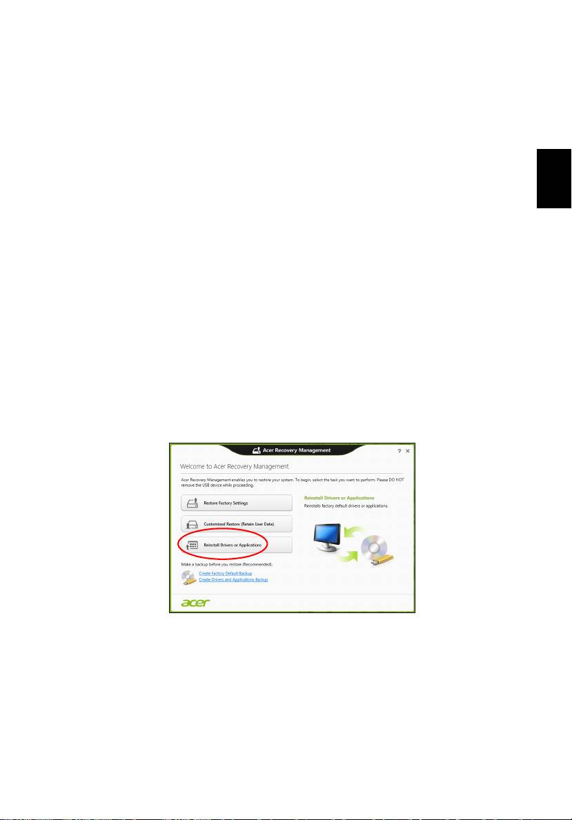 din fabrică utilizând Acer Recovery Management" la pagina 14.