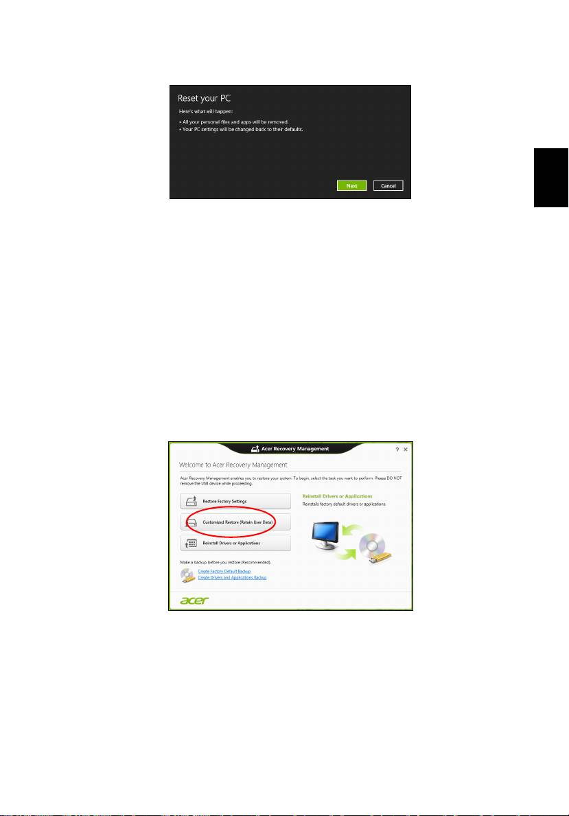 Restaurare particularizată utilizând Acer Recovery Management