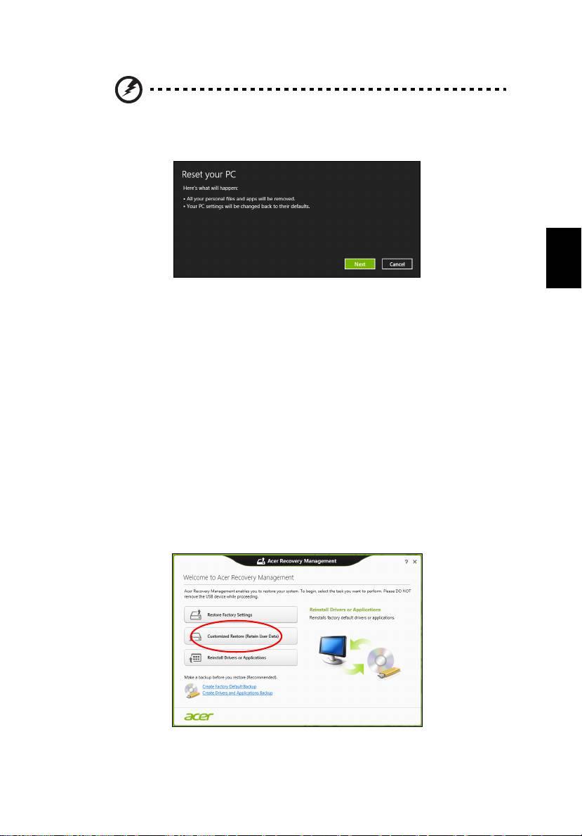 Ако преинсталирате чрез Windows и информацията за възстановяване,