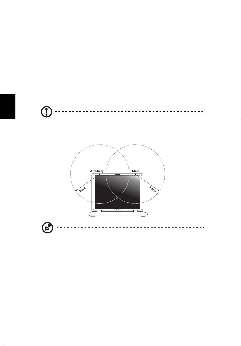 og når enheten og antennen er plassert minst 1,5 centimeter fra kroppen (se