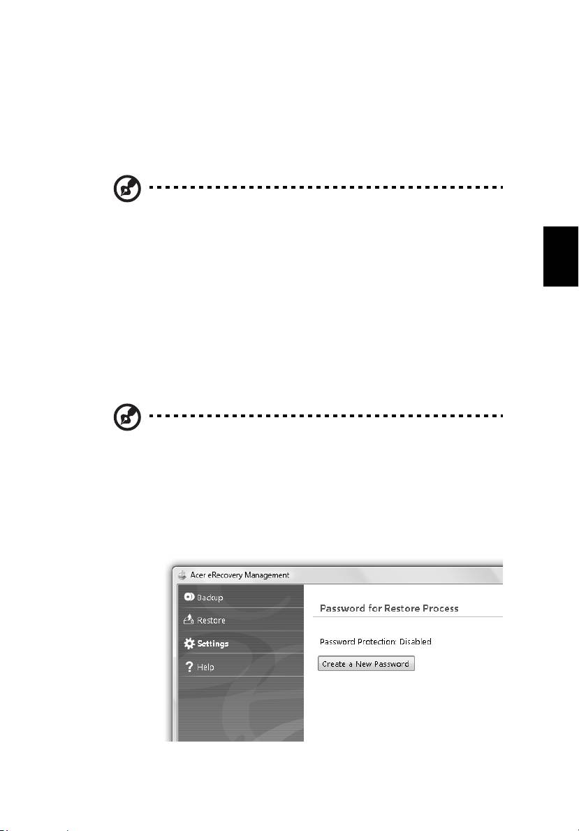 Ha igénybe szeretné venni az Acer eRecovery Management jelszavas védelmi