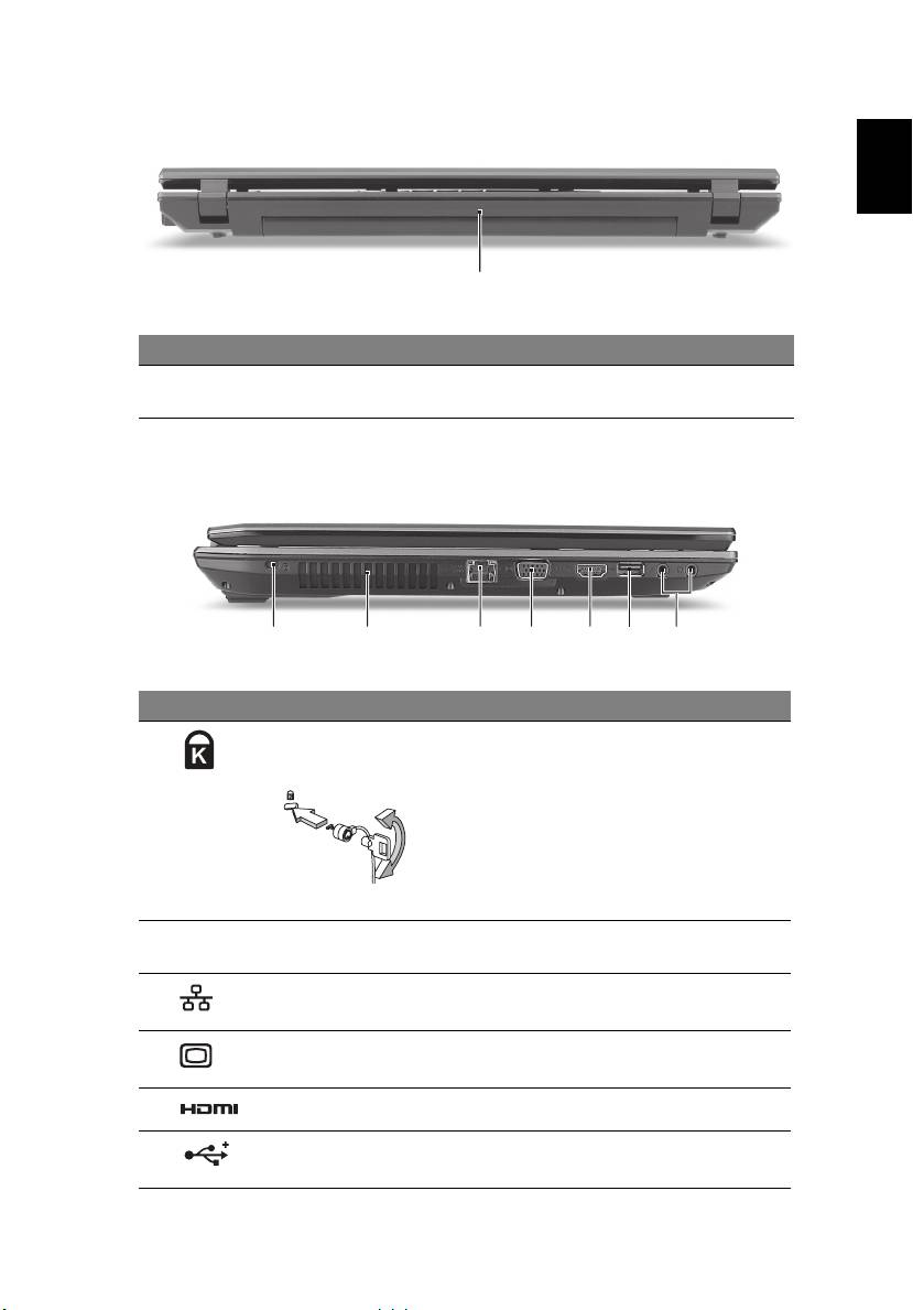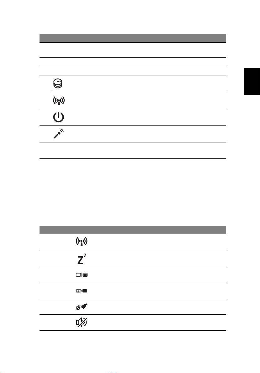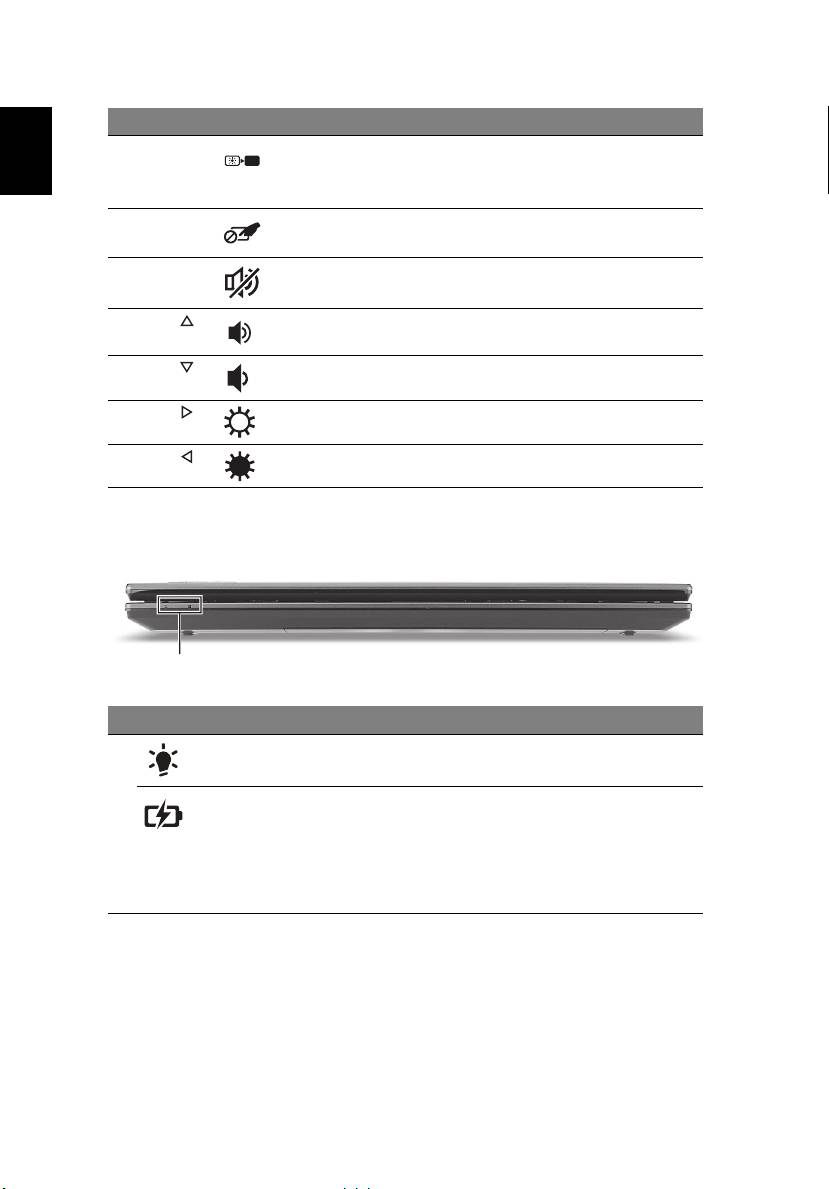 1. 即使在電腦螢幕闔上時,您依然可看見位於前面板的狀態指示燈。