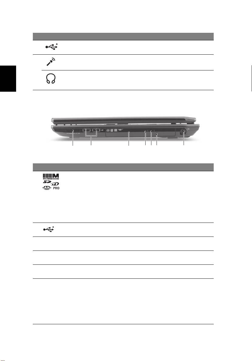 6 Porta USB 2.0 Effettua il collegamento ai dispositivi