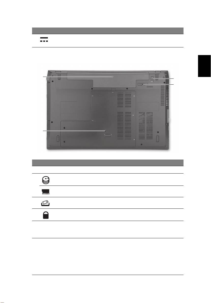 1 Baie de la batterie Contient la batterie de l’ordinateur.