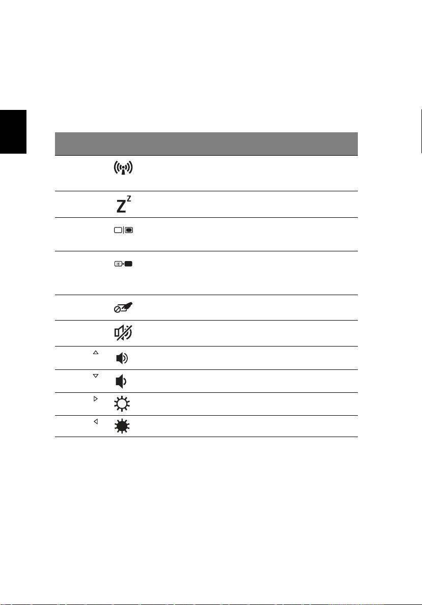 <Fn> + <F4> Miega režīms Pārslēdz datoru miega režīmā.