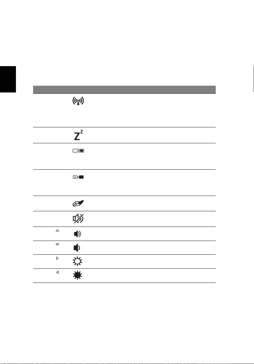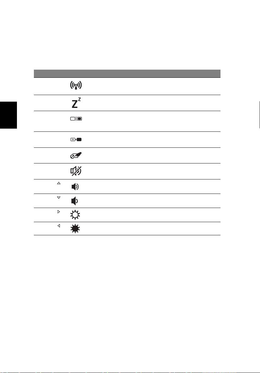 Untuk mengaktifkan tombol pintas, tekan terus tombol <Fn> sebelum menekan