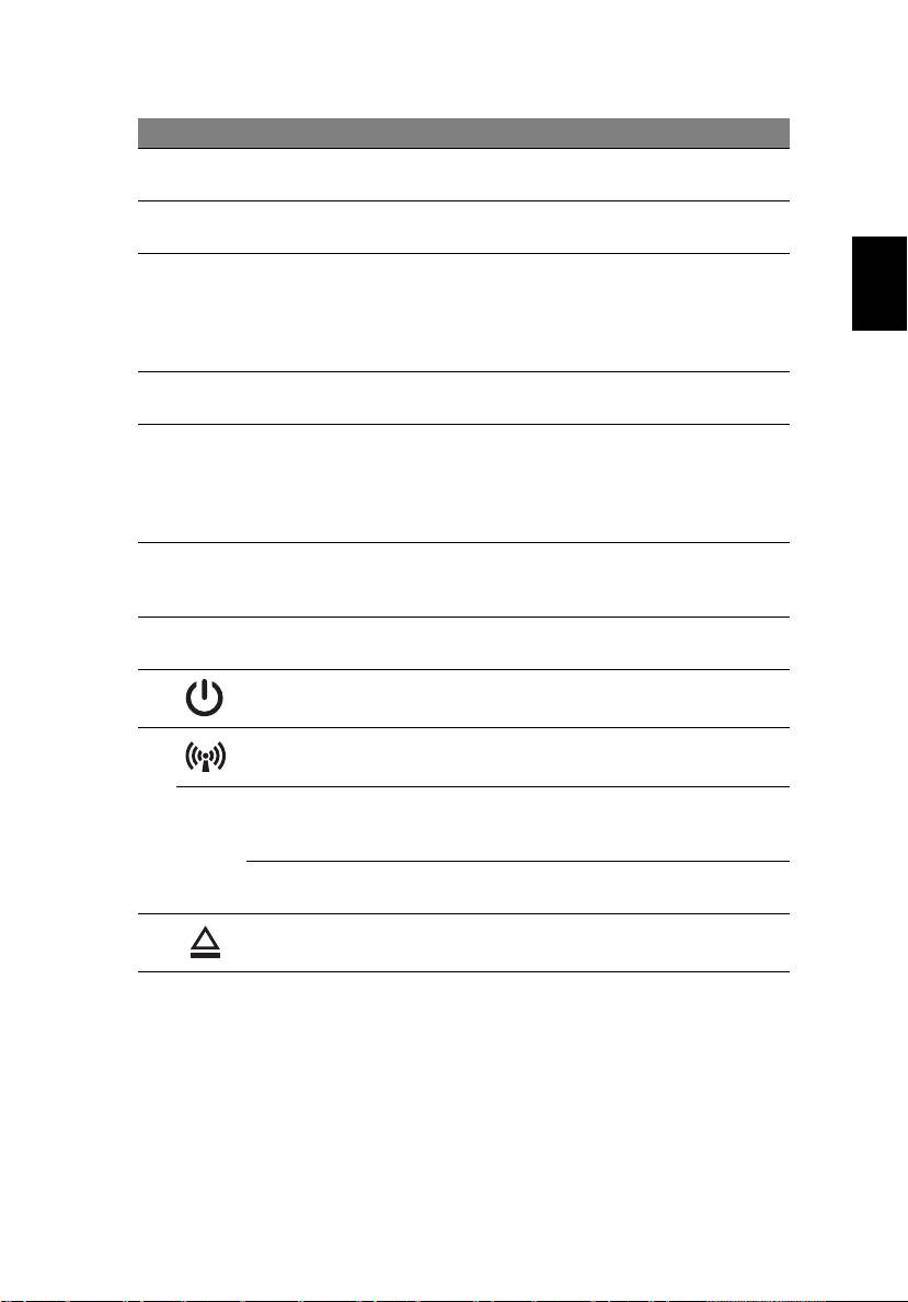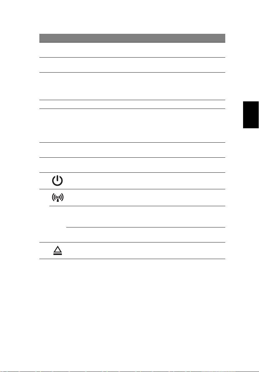 8 Bekapcsoló gomb Be- és kikapcsolja a számítógépet.