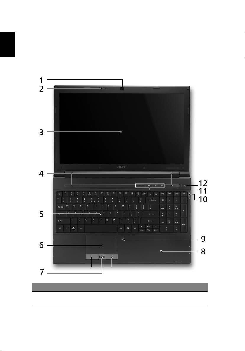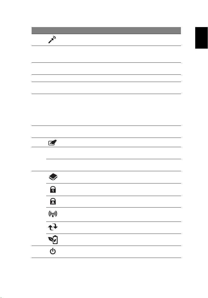 1 Battery Indicates the computer's battery status.