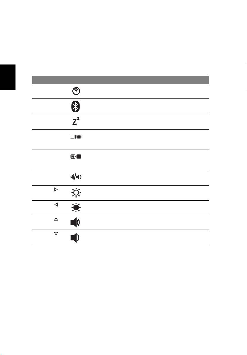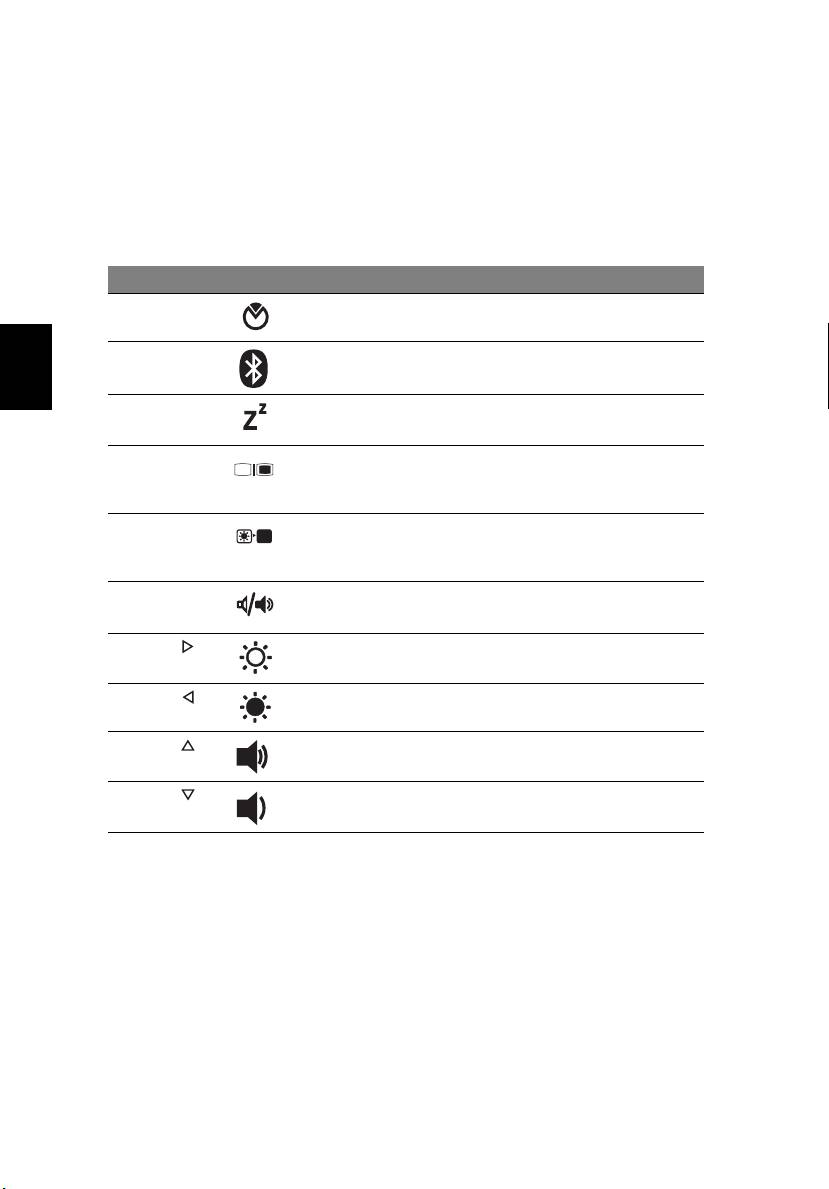 Vroča tipka Ikona Funkcija Opis