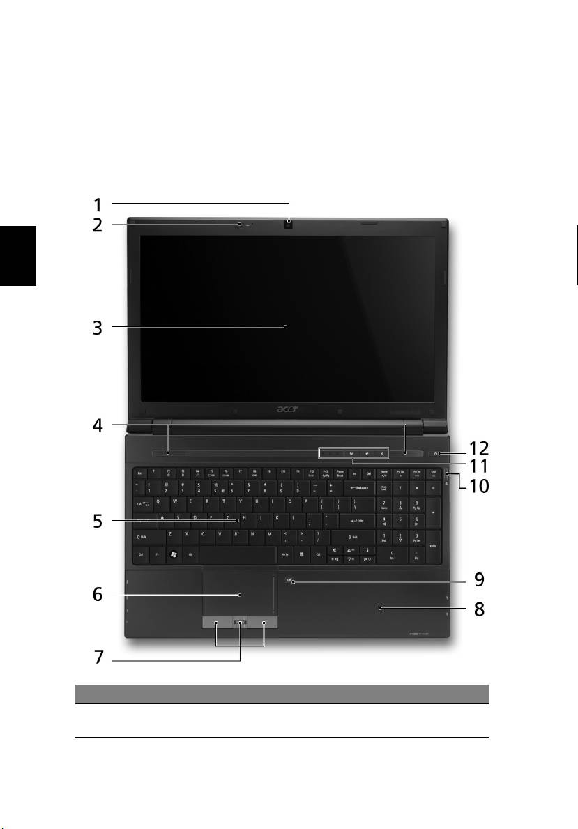 1 Baterija Označuje stanje baterije računalnika.