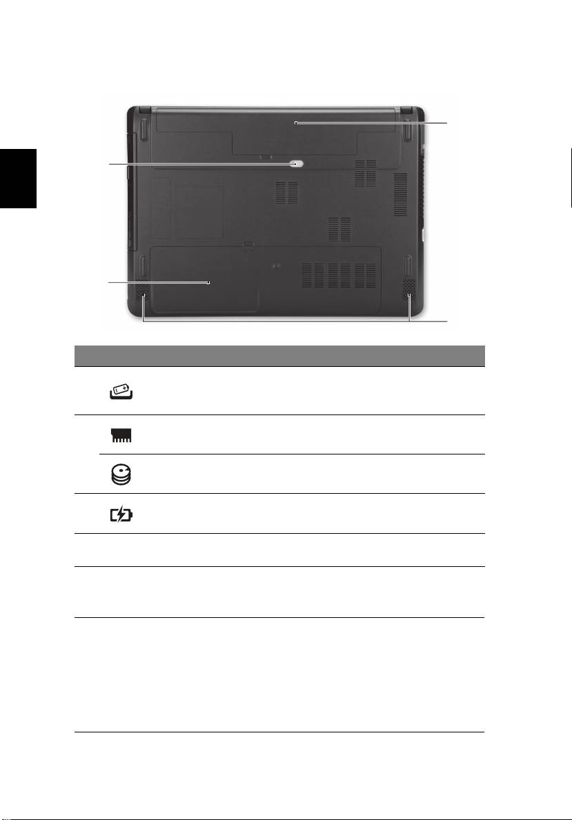 3 Batterijnis Bevat de batterij van de computer.